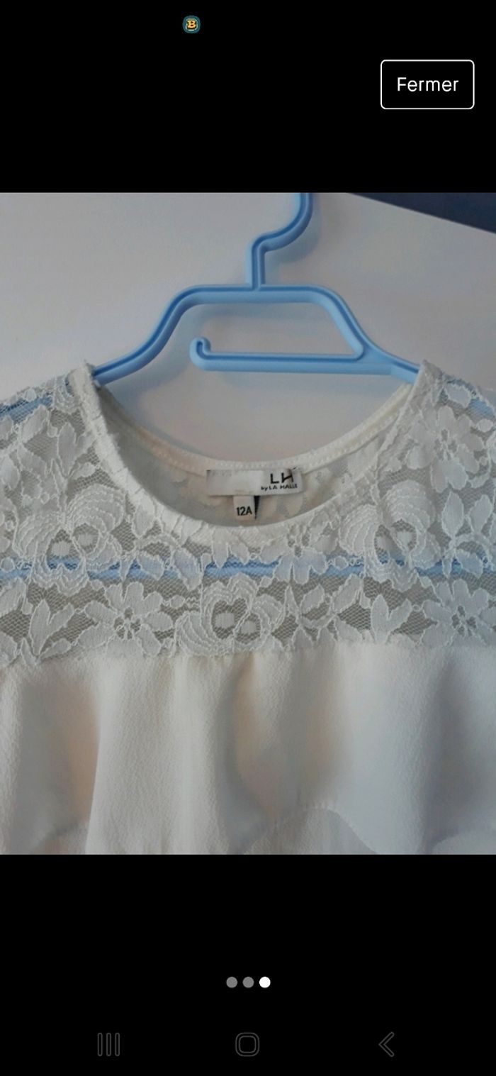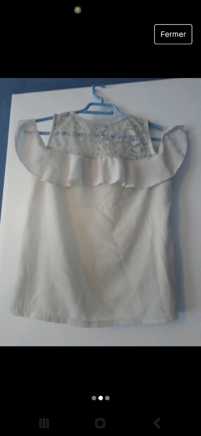 Haut crème, léger, épaules dénudées, dentelle. Longueur 50 cm.