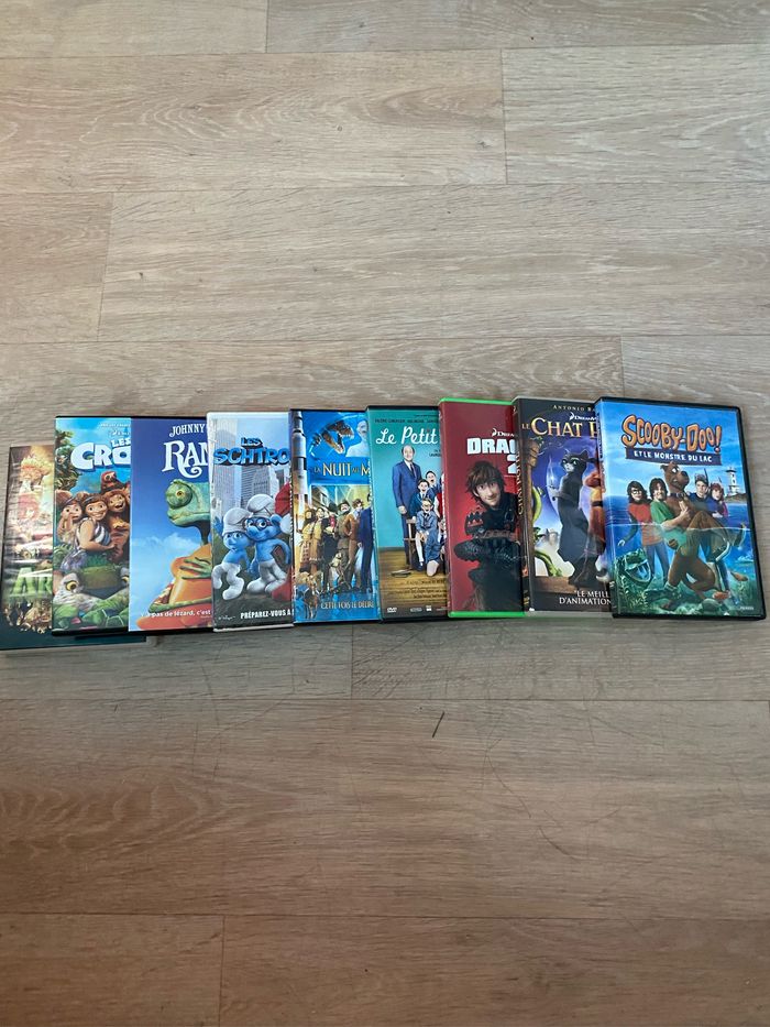 Lot contentant : Arthur et les minimoys/ les Croods/ Scooby-Doo/ Le chat potté/ Dragons 2/ Le petit nicolas/ La nuit au musée 2/ Les schtroumpfs/ Rango Disponible pour des questions !