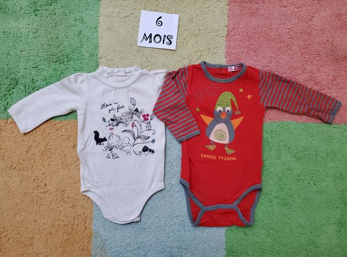 Lot 2 bodies manches longues- 6 mois - DPAM et Cie des petits - TBE - photo numéro 1