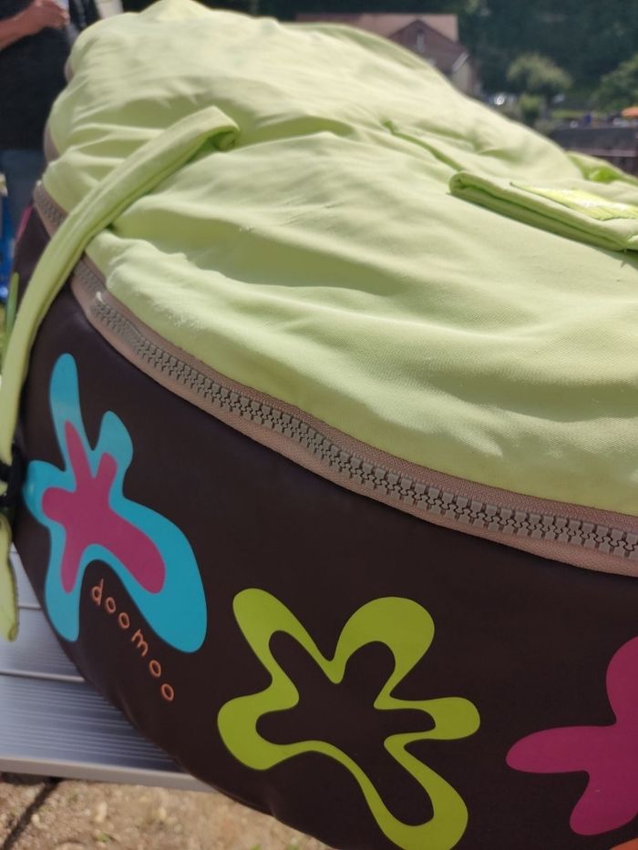 Doomoo, bon état et très confortable pour bébé. Fermeture à l'arrière cassée qui ne gêne en rien l'utilisation.