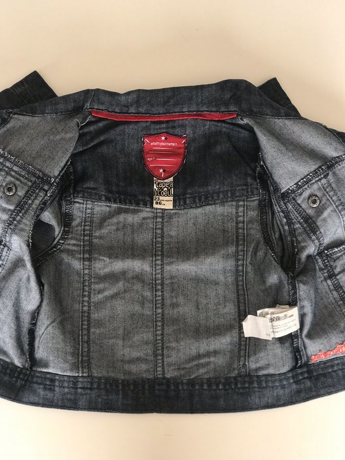 Veste denim à boutonner. 65% coton + 35% polyester. Tape à l’œil. 23 mois.
