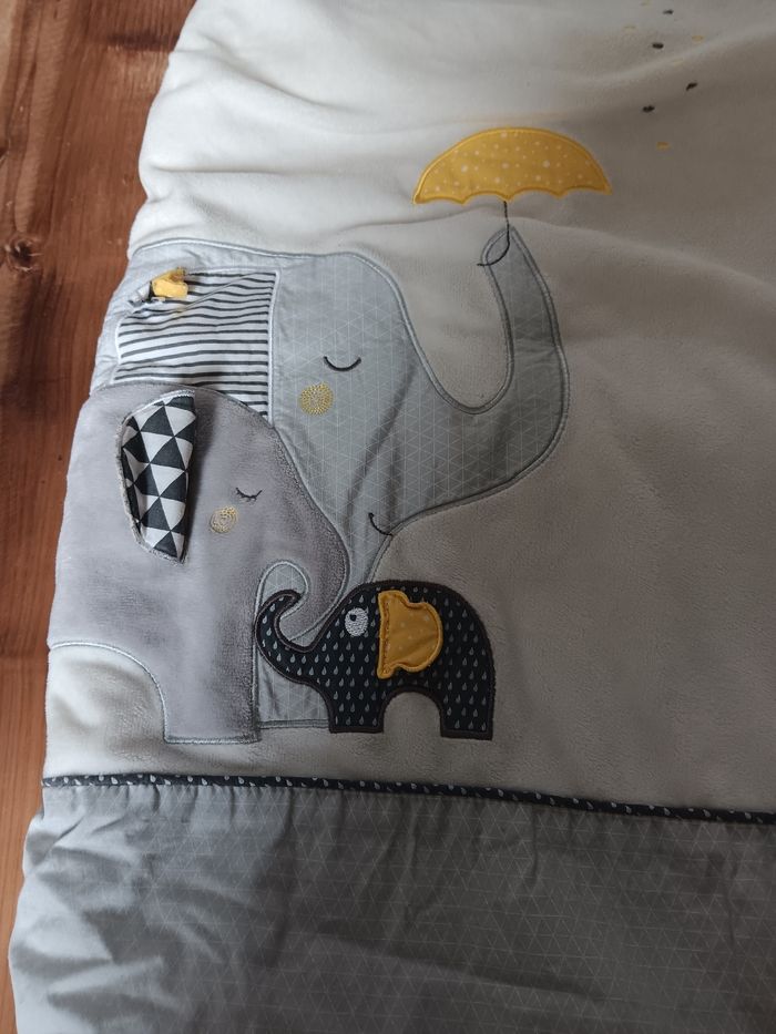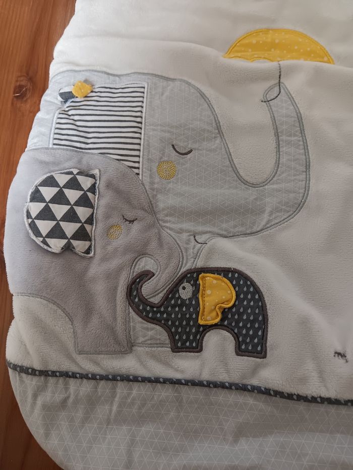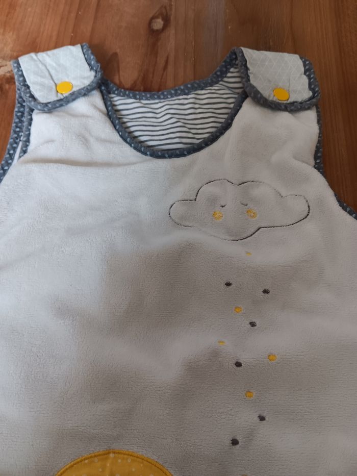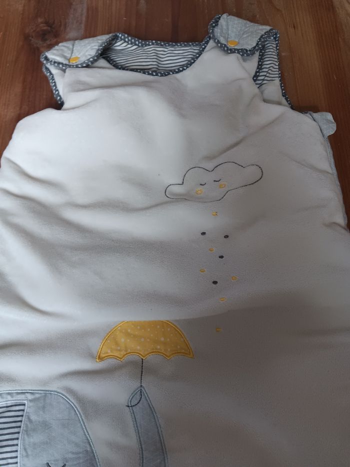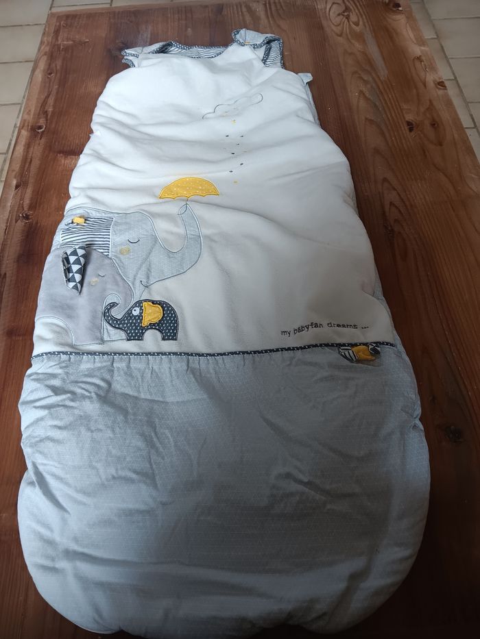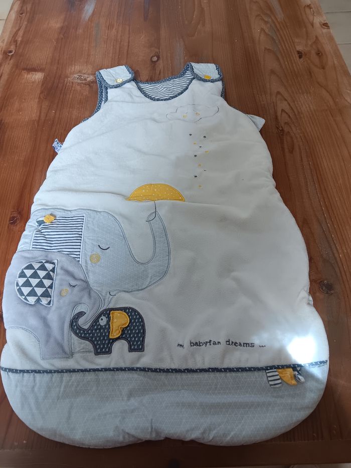 Bonjour Je vends un lot de marque sauthon baby fan 1 gigoteuse 0-6 mois 1 gigoteuse 6-24 mois 1 couverture 1 doudou 1 spirale