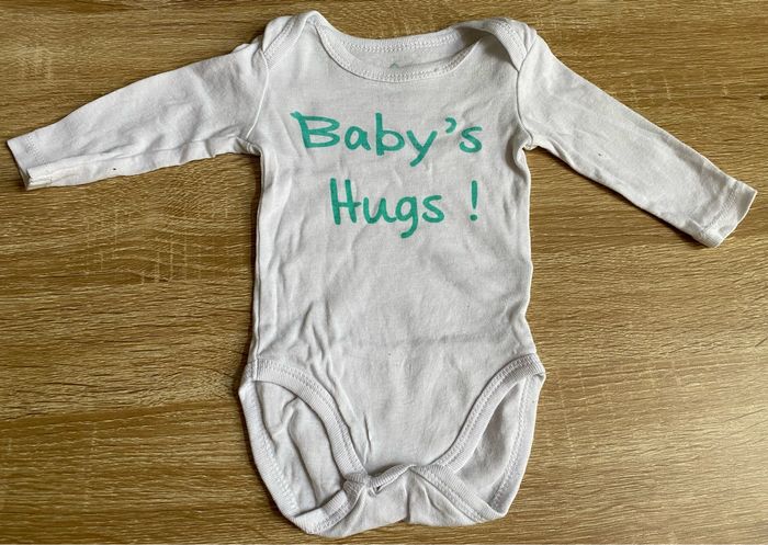 Lot de 4 bodies, taille 3 mois. Description selon l’ordre des photos. - Marque In Extenso - Marque PETIT CAILLOUX - Marque TEX pour les deux bodies baby’s hugs - Marque MO KIDS