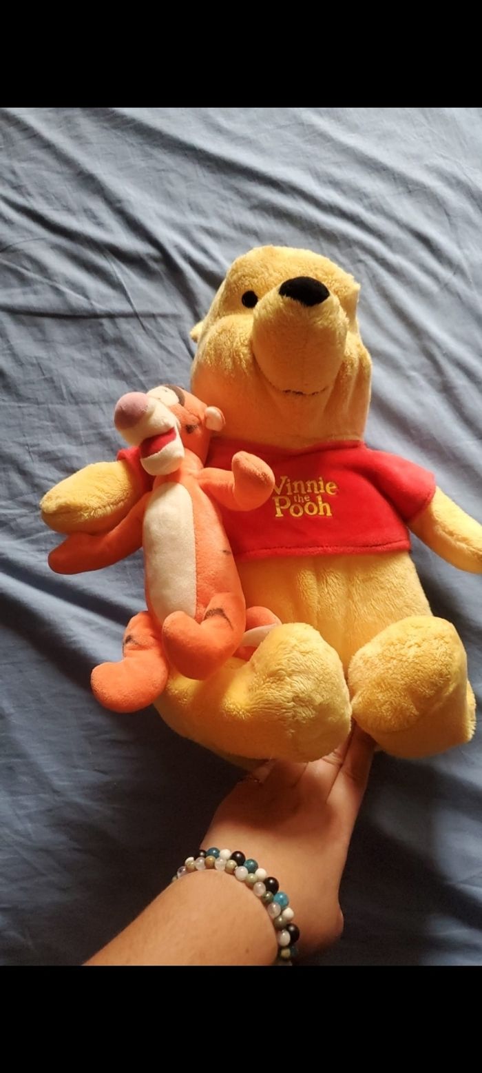 Doudou Winnie et Tigrou cousu ensemble marque nicotoy avec la licence Disney taille 40cm environ en très bon état général doud