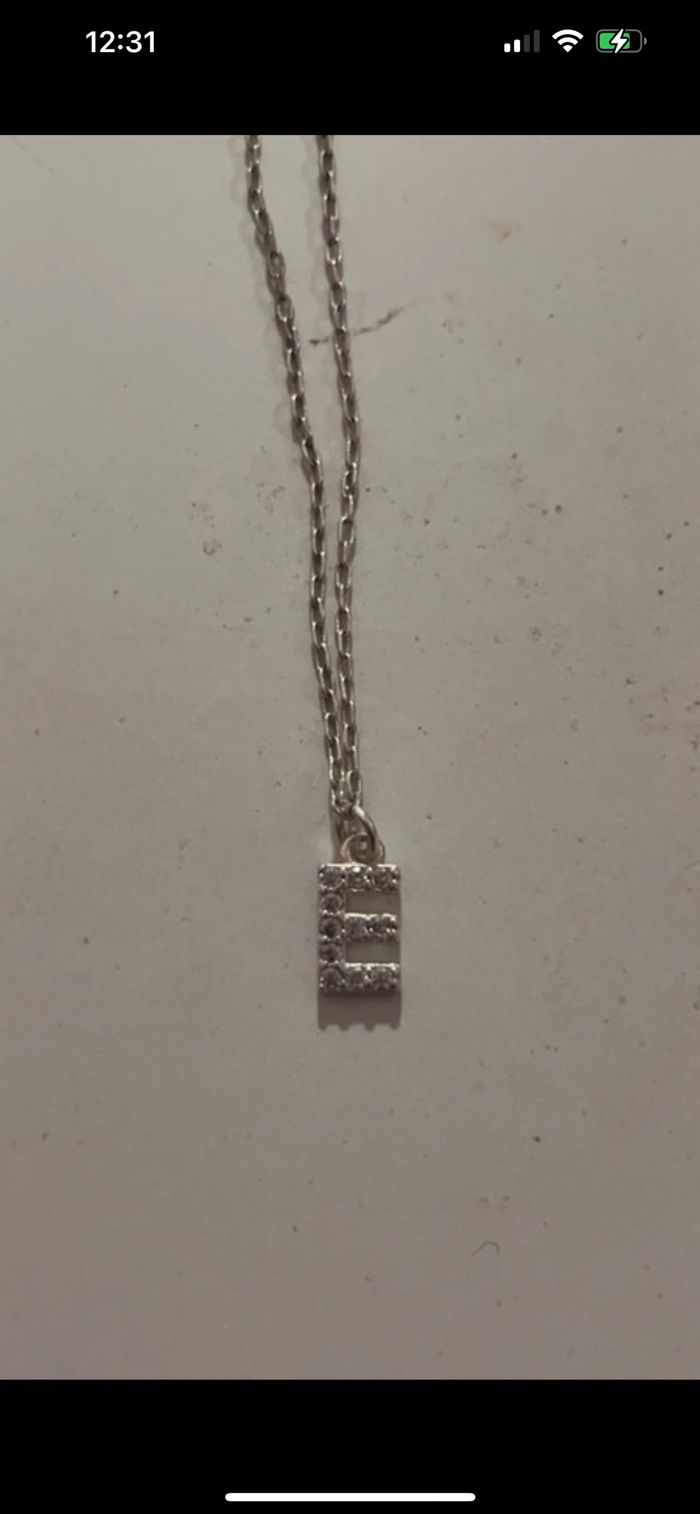 Collier avec pendentif E en strass en argent