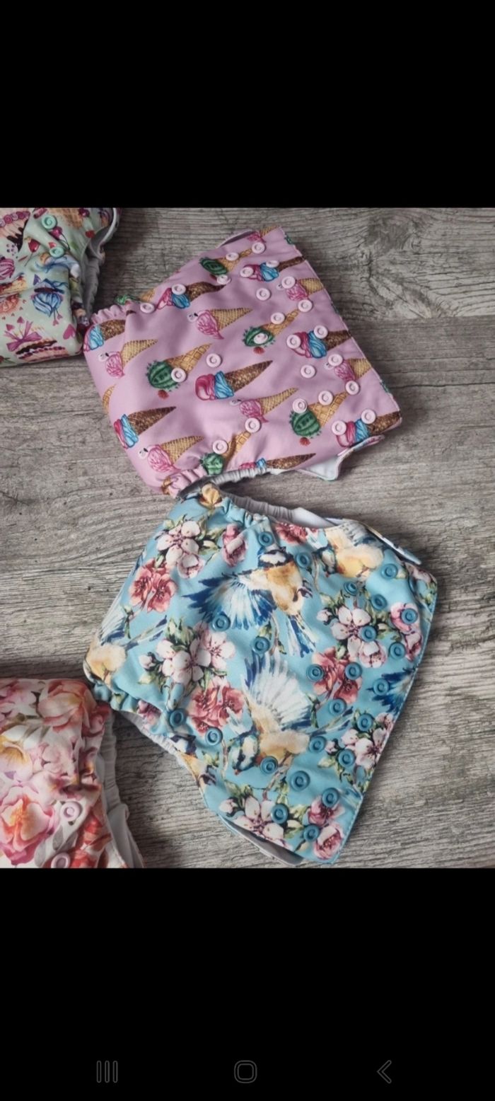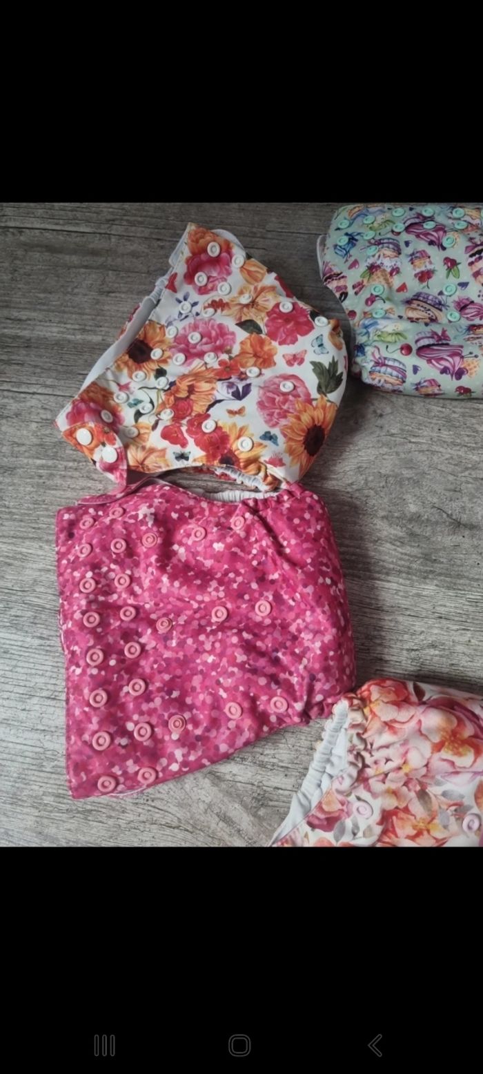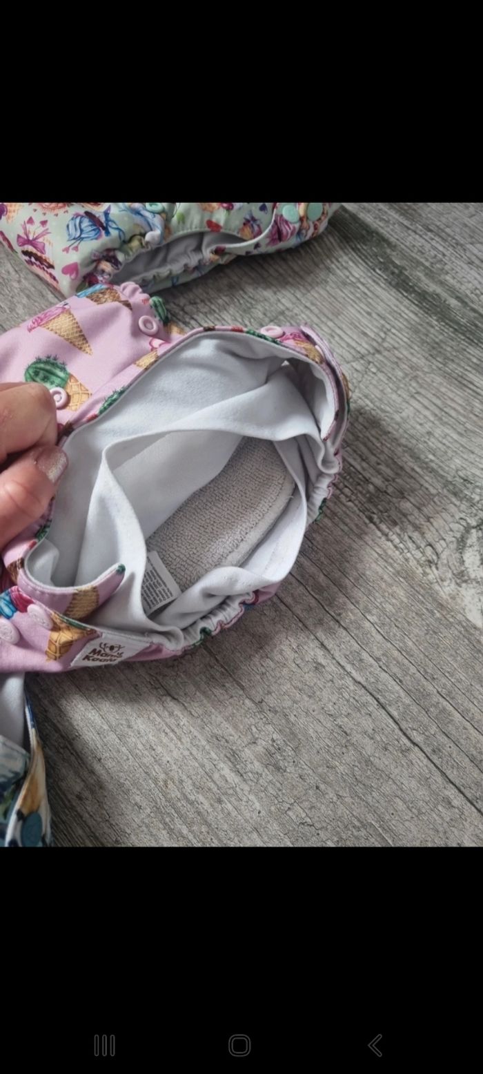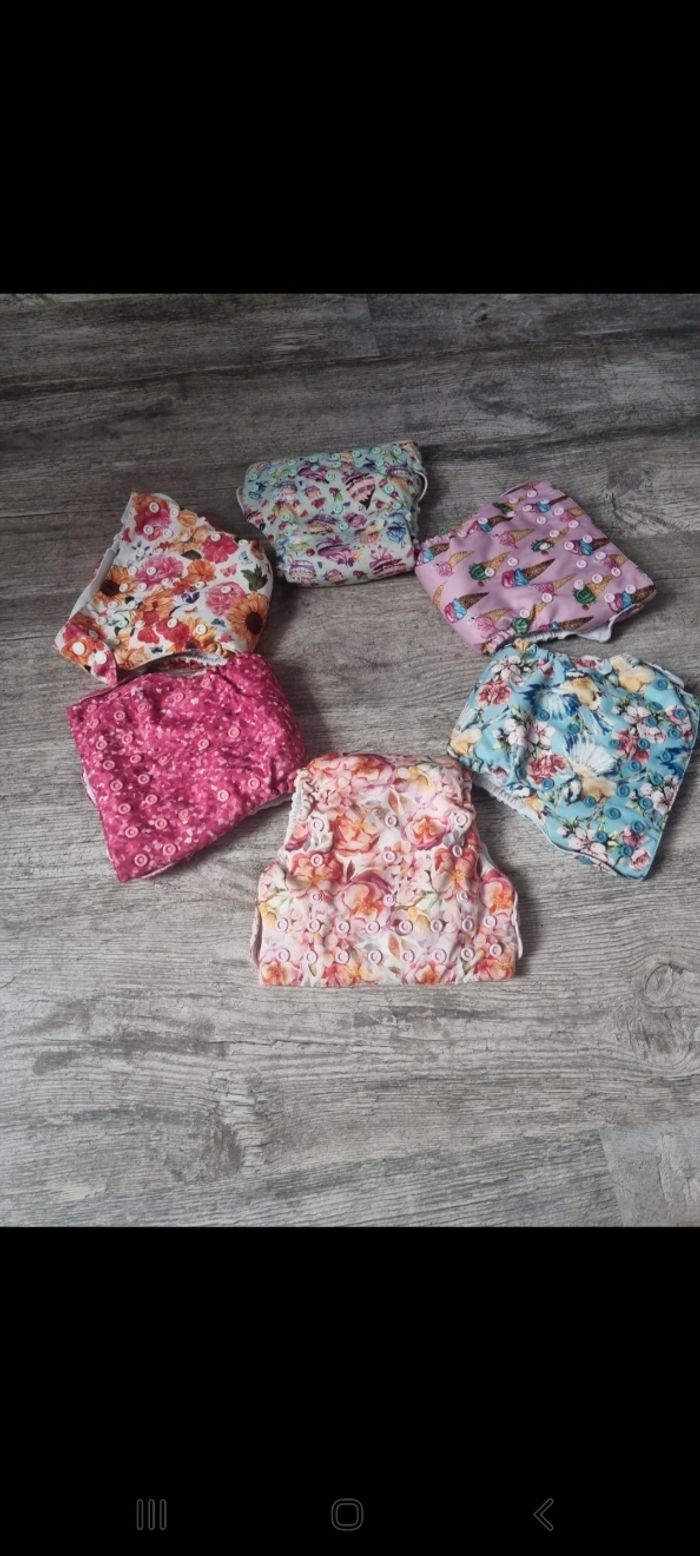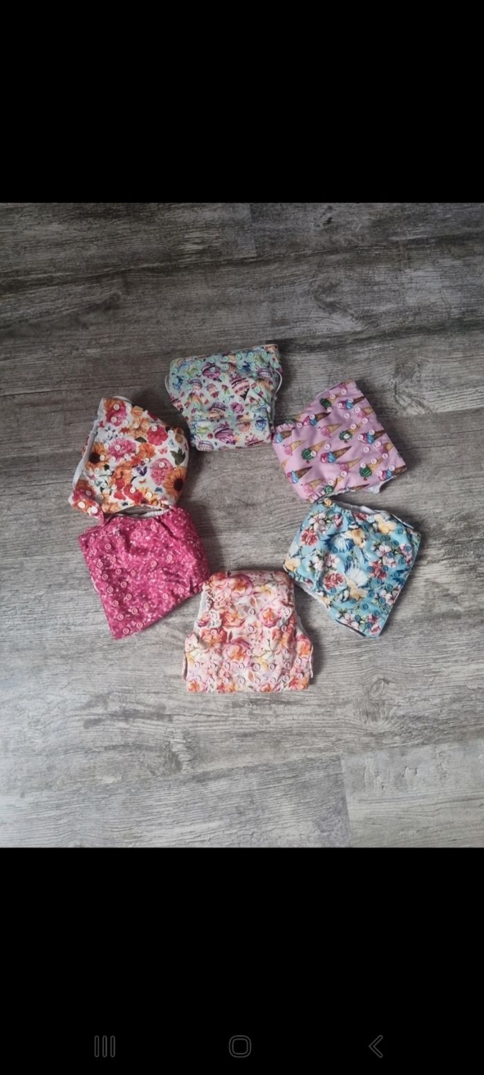 Je vends un lots de 6 couches lavable avec 2 insert dans chaque couches, de la marque mama koalas, ajustables en fonction de la taille de votre bébé grâce au pression
