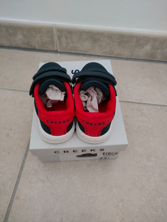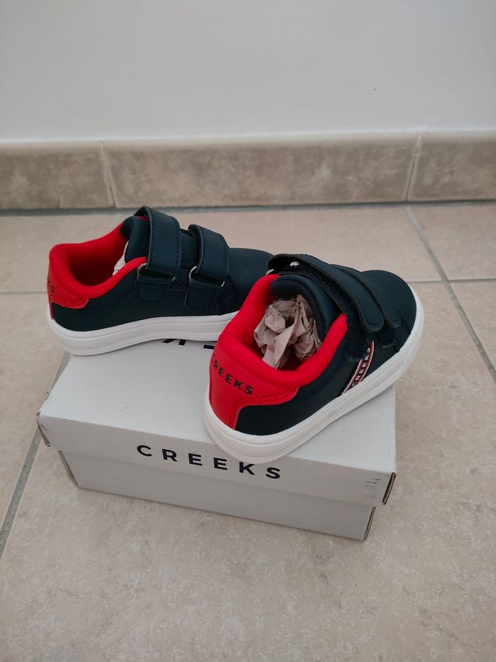 Baskets creeks taille 20 couleur bleu marine et rouge à scratch. Neuve avec étiquette jamais porté. Prix d'achat 22.99€