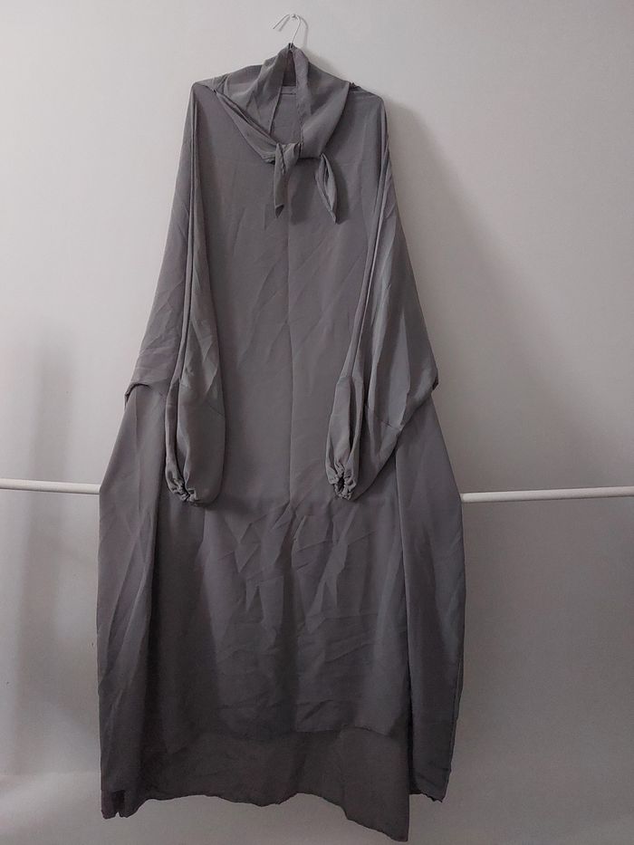 Bonjour, Je vends ce jilbeb gris clair 1 pièces, de la marque jilbebinblack, jamais porter, tout neuf, fluide, tototalment opaque, avec ses manches élastiques parfait pour faire ses ablutions ou autres. Taille : T1 -1m65