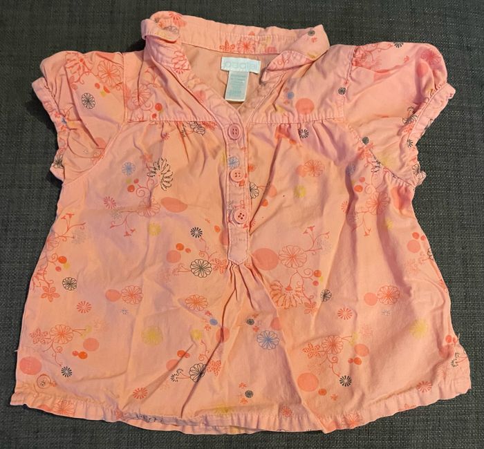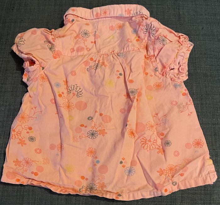 Tunique chemisier de la marque Obaibi Taille 6 mois Couleur rose corail Légères traces d’utilisation Occasion, bon état
