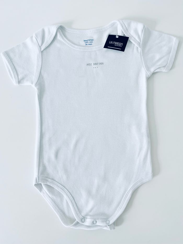 Adorable bodie Bout’ Chou, taille 36 mois mais taille très petit, correspond à un 18 mois Article neuf avec étiquette