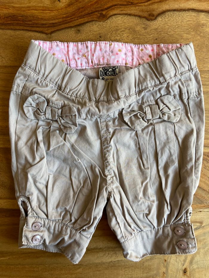 Short tissu Taupe avec des petits noeuds devant Tape à l’œil 6 mois