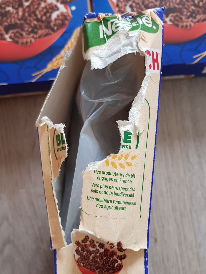 Vend un lot de 3 paquets de céréales Nestlé Les emballages sont abîmés