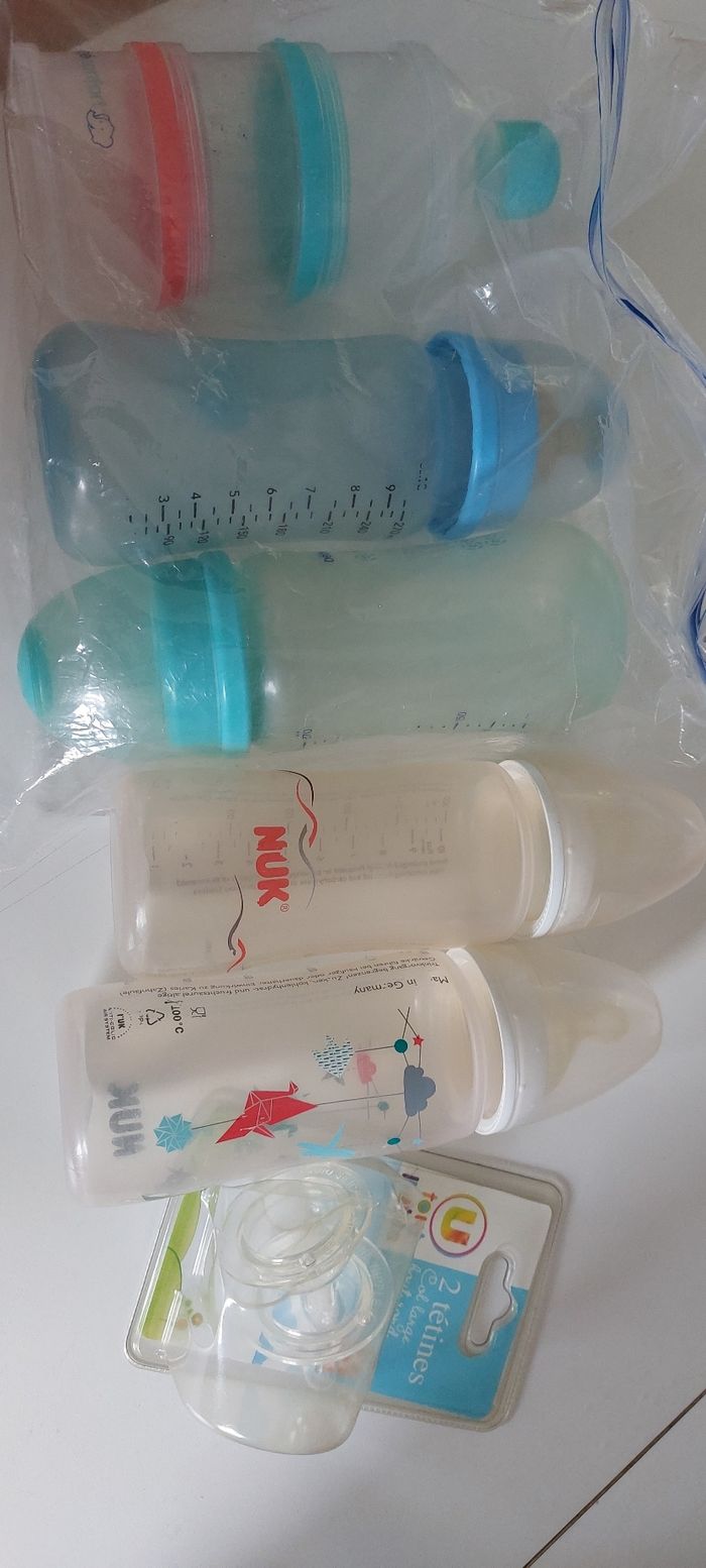 2 biberons bébé confort 2 biberons nuk 1 pack de tétines neuves u 1 doseur bib