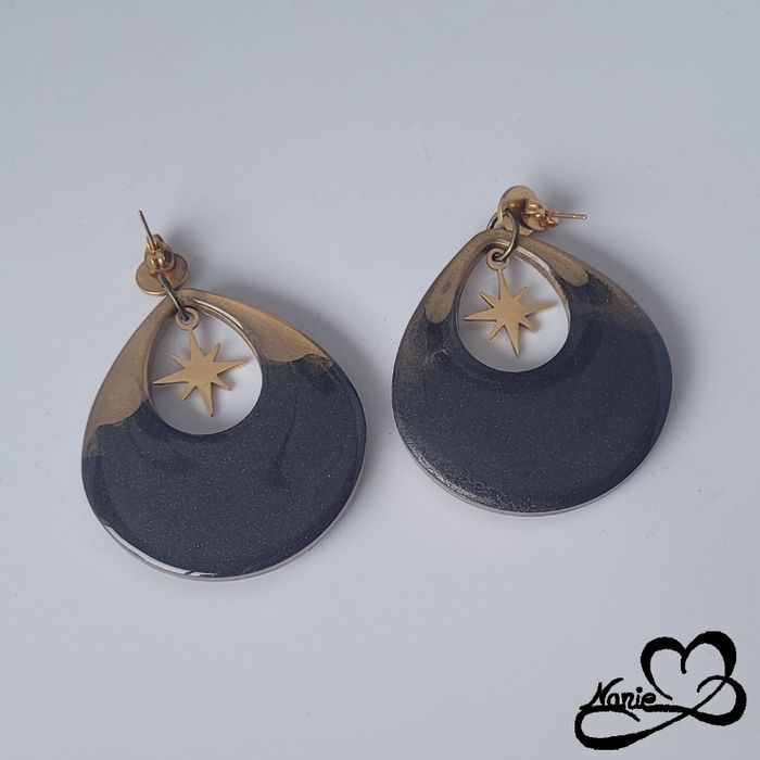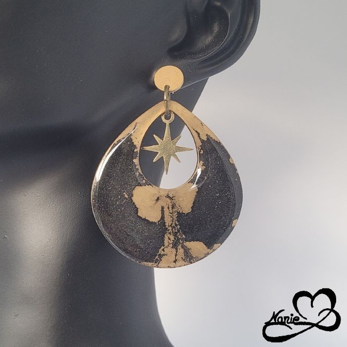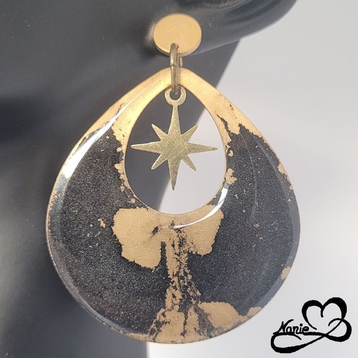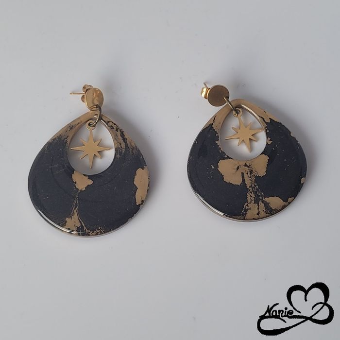 Boucles d'oreilles Noires et Dorées avec une étoile - photo numéro 1