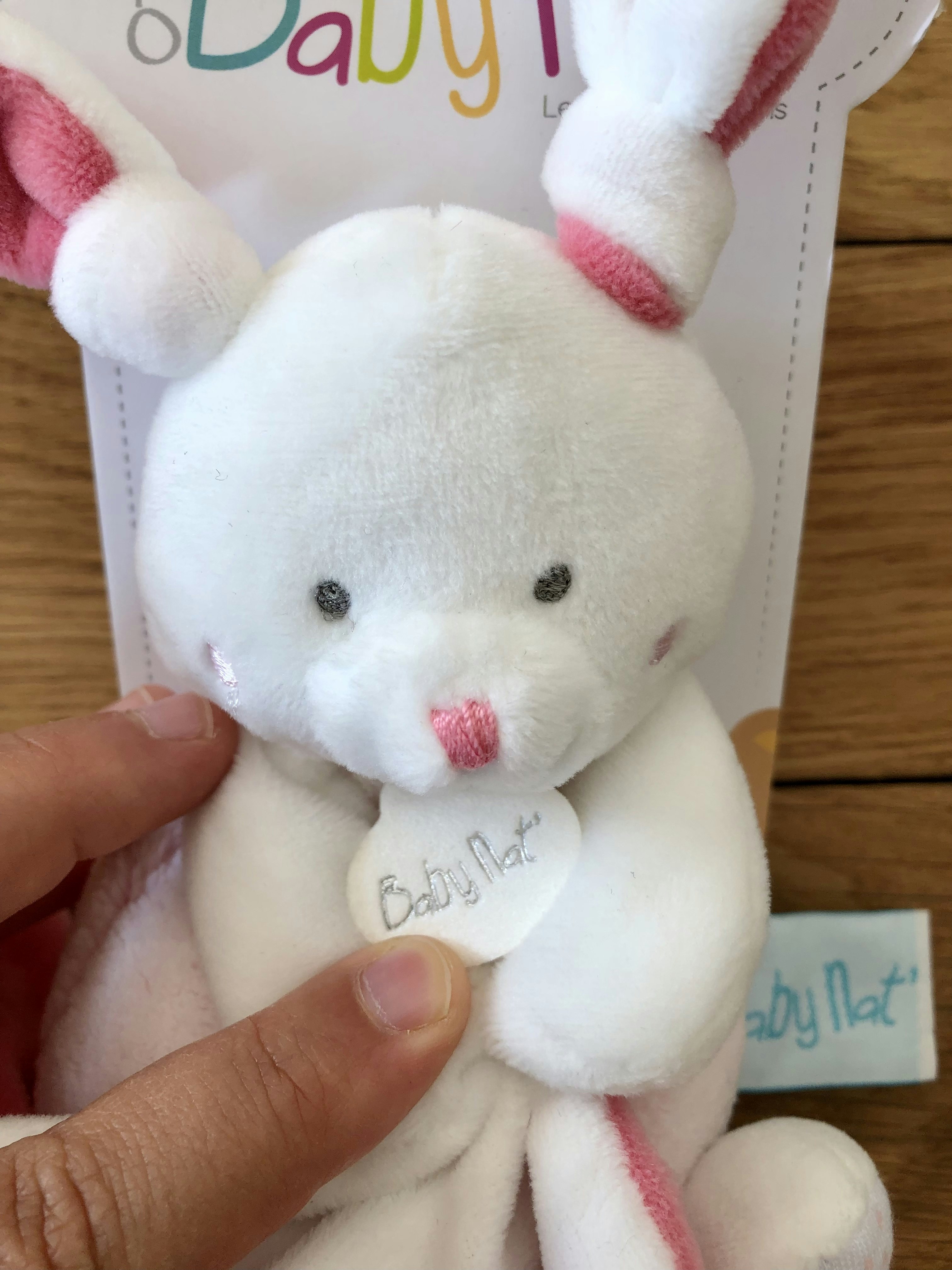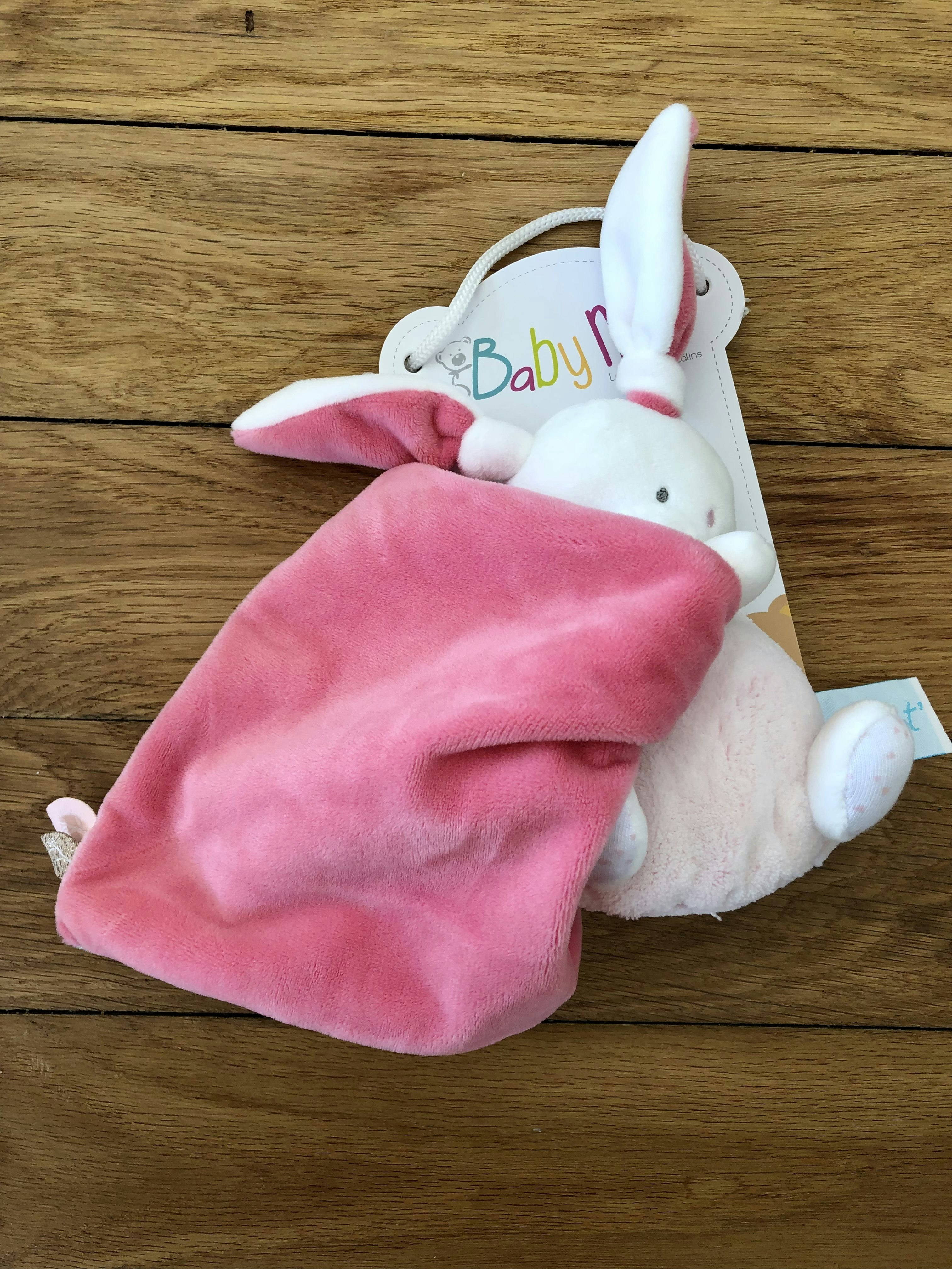 Doudou en forme de lapin, marque baby nat neuf. Encore avec son emballage. Très doux. Lavable en machine.