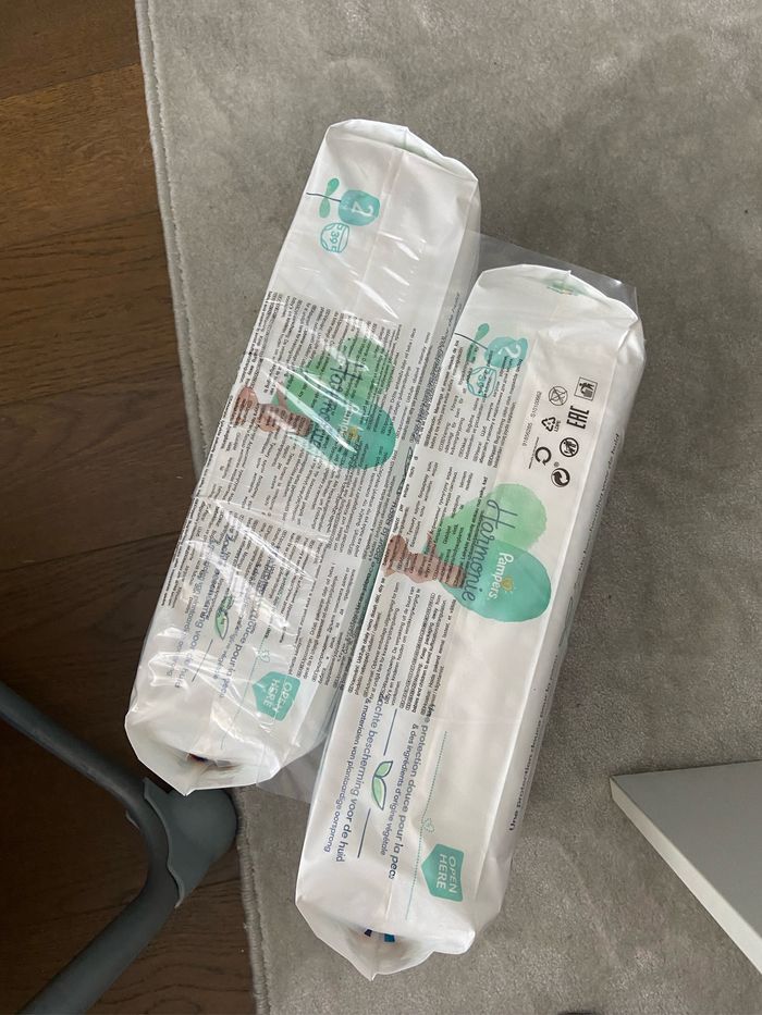 Durant ma grossesse j’ai acheté trop de taille 2. Je vend donc mes deux paquets de couches jamais ouvert.