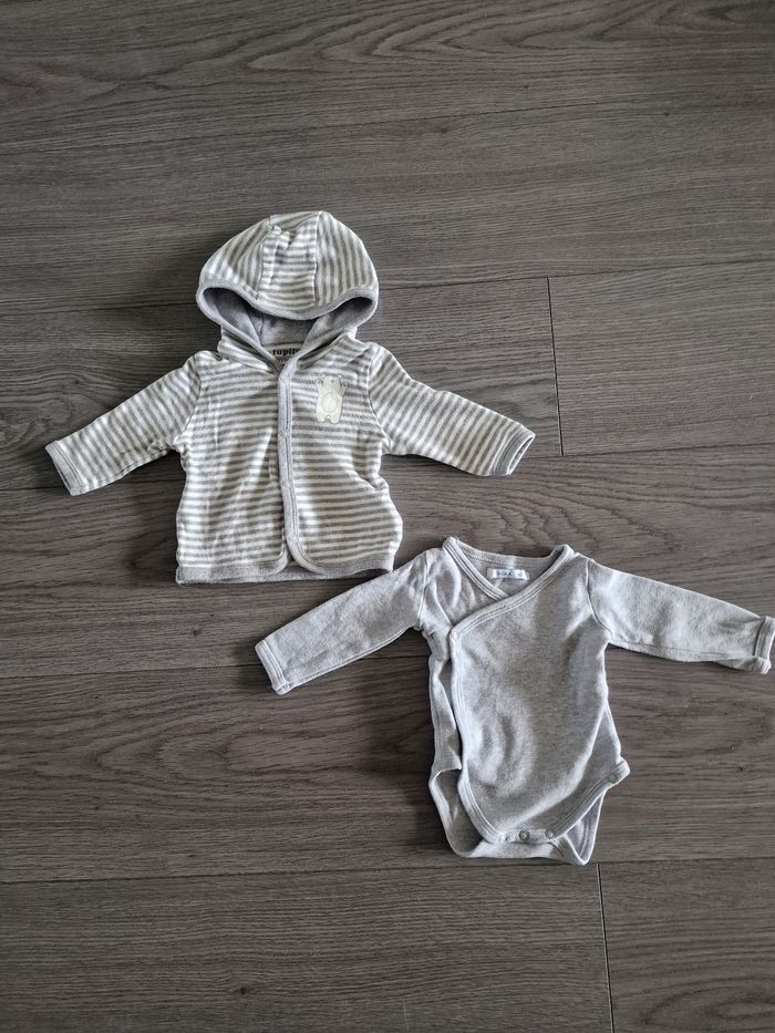 Lot de 1 body manche longue ouverture devant et 1 veste au capuche bébé des naissance de Lipilu et Hema en très bon état