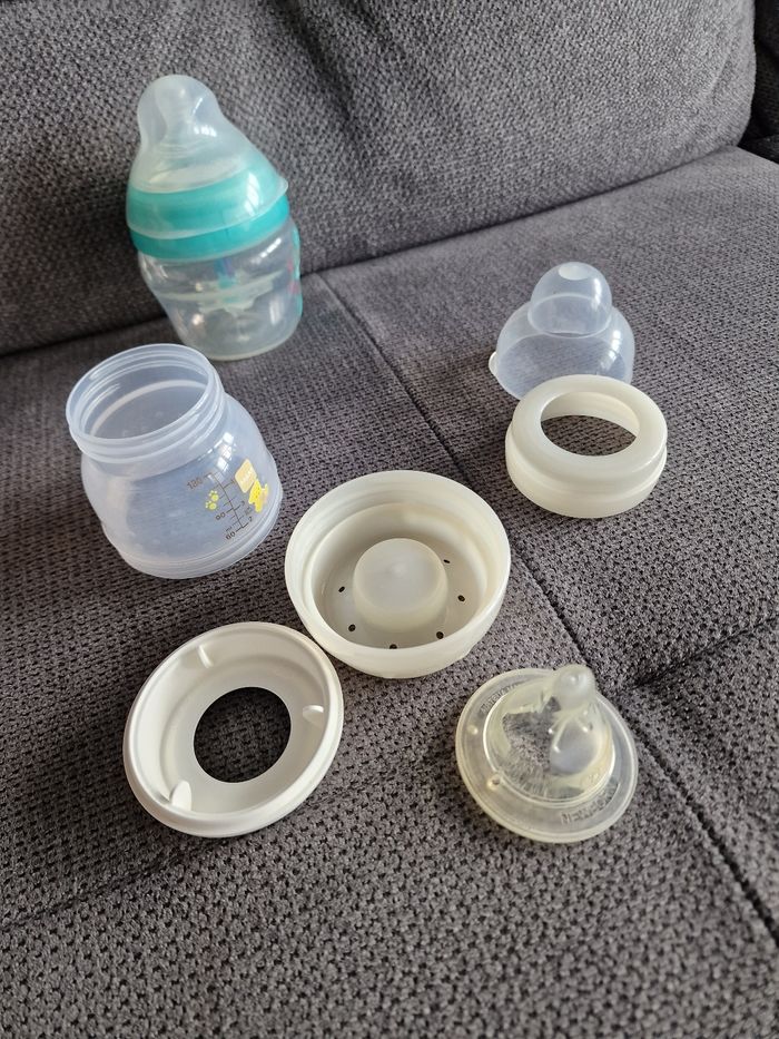 Lot de 2 bebirons anti-coliques de naissance MAM 130 ml et Tommee Tippee 150 ml avec des tétines taille 1 (des naissance) utilisés 1 fois pour essai (mon fils a refusé tout les bebirons et sucettes) donc en très bon état.