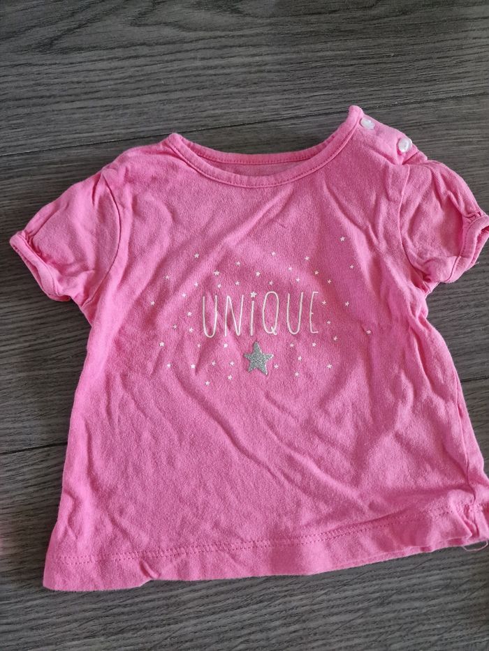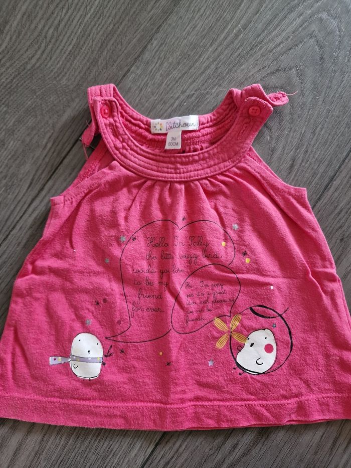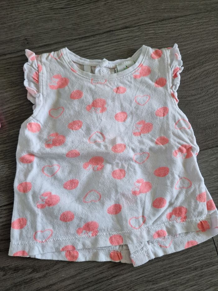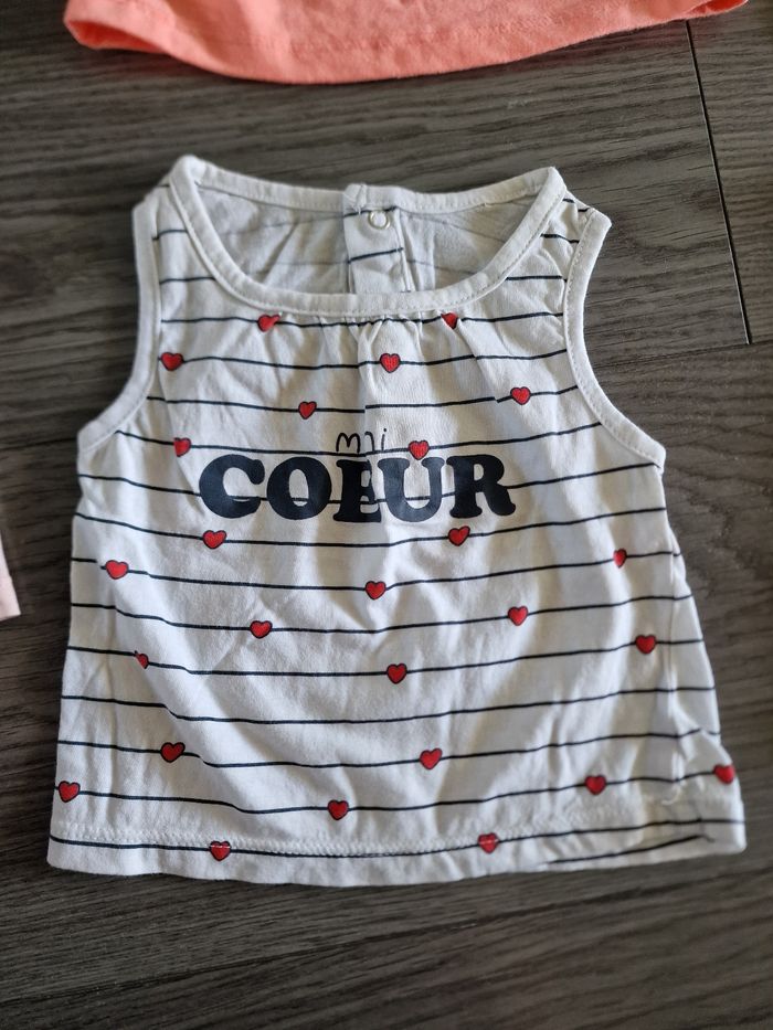 Lot de 7 tee-shirts/débardeurs manche courte pour fille de 3 mois. Différentes marques: Tape à l'œil, Disney baby, Kitchoun. Très bon état.