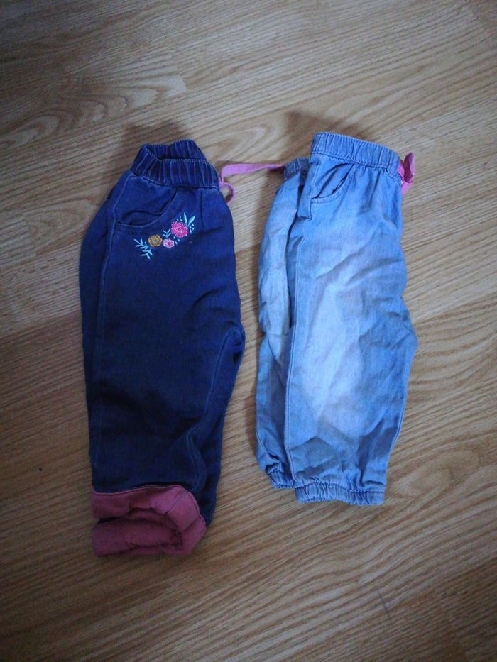 2 jeans taille 6 mois Le bleu foncé est neuf le bleu clair à été porté 2 fois