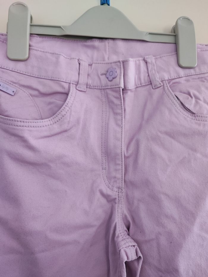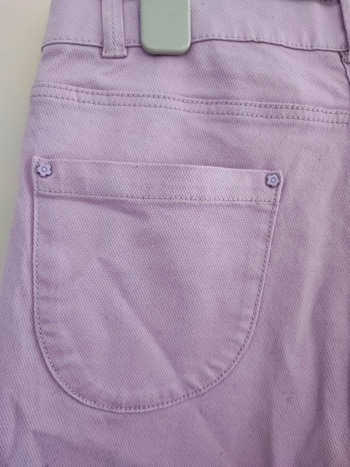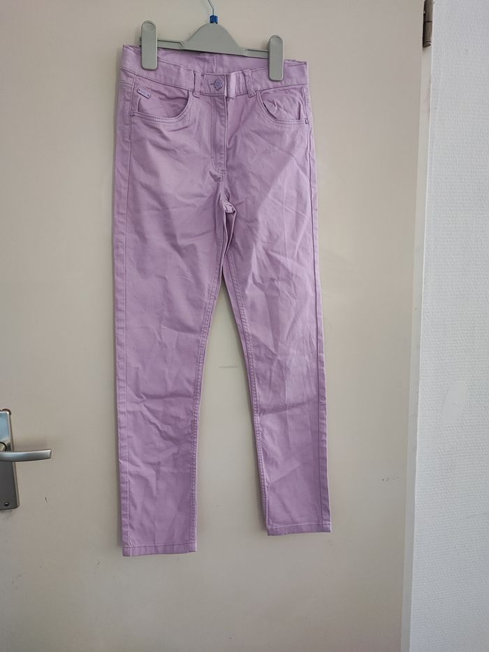 Superbe pantalon fille Style jean Coupe droite Poches avant arrière avec bouton fantaisie forme fleur Logo métal Taille 11 ans Coloris parme