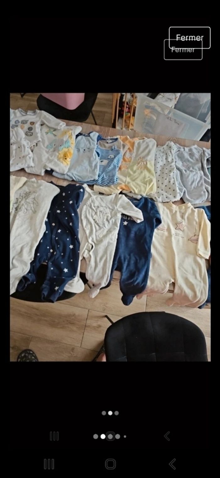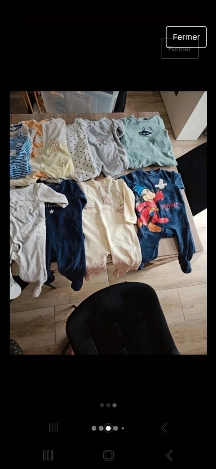 Lot 12 mois comprenant 18 pyjamas d hiver 12 bodies 5 ensembles 6 pulls tee shirt 13 pantalons 1 grosse veste d hiver Diverses marques