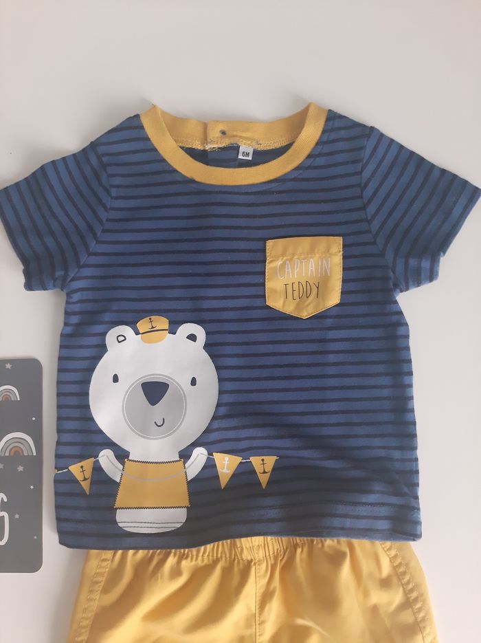 Ensemble T-shirt et short bébé garçon. Trop mignon. 😍 En parfait état. Les étiquettes sont coupées et je ne me souviens plus de la marque.