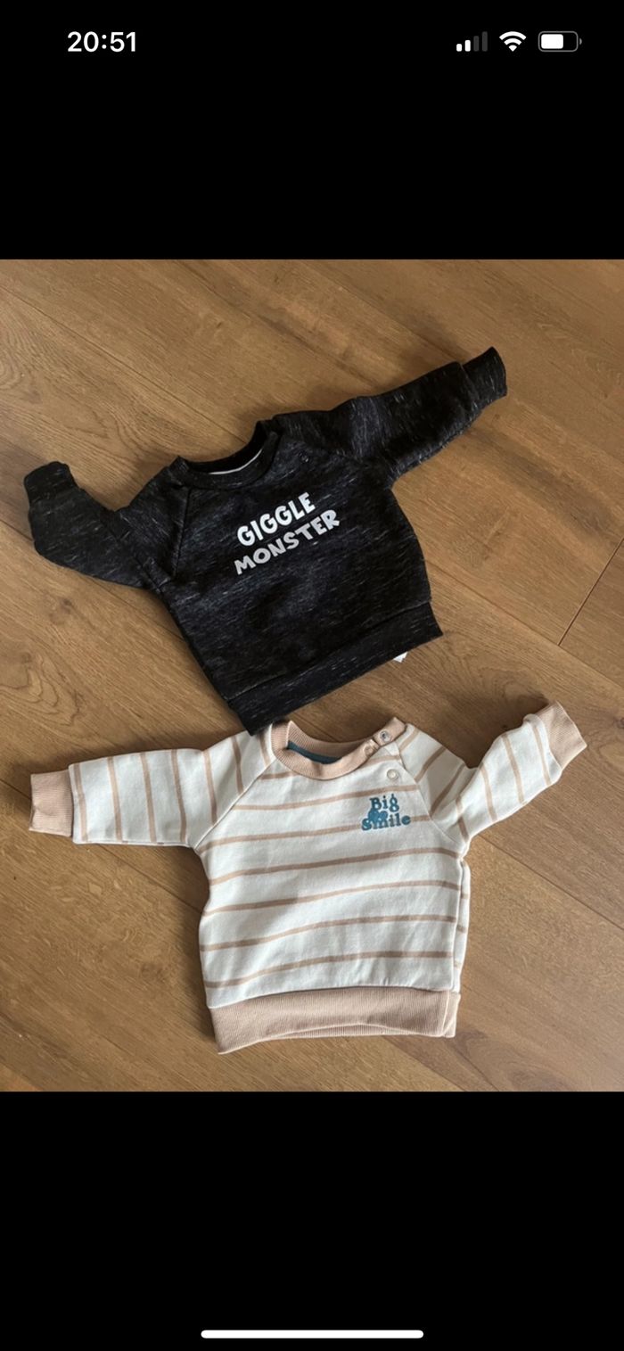 2 pulls parfait état taille 1 mois