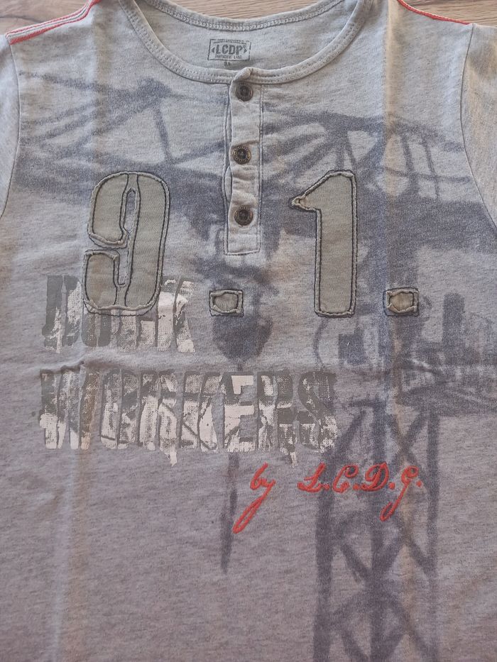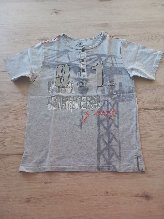 Tee shirt gris avec grue 3 boutons devant Taile 8 ans