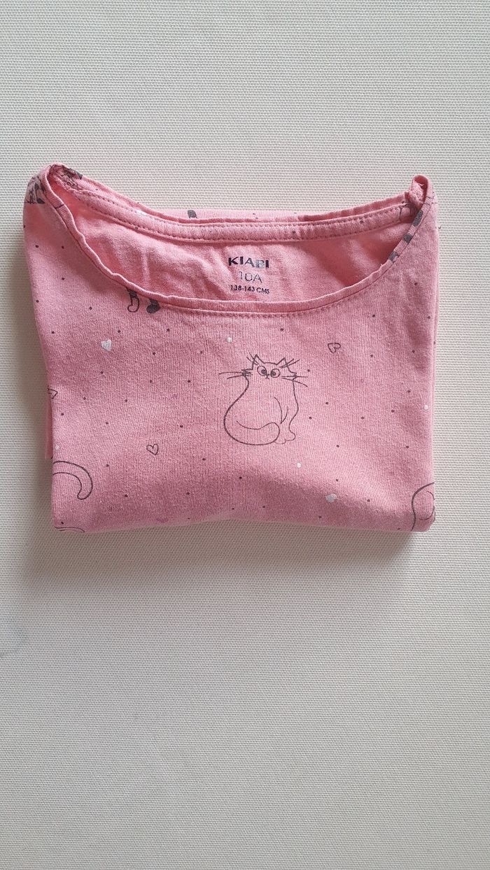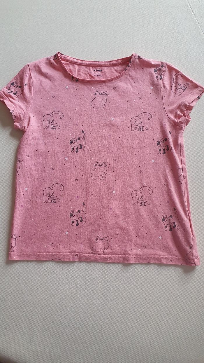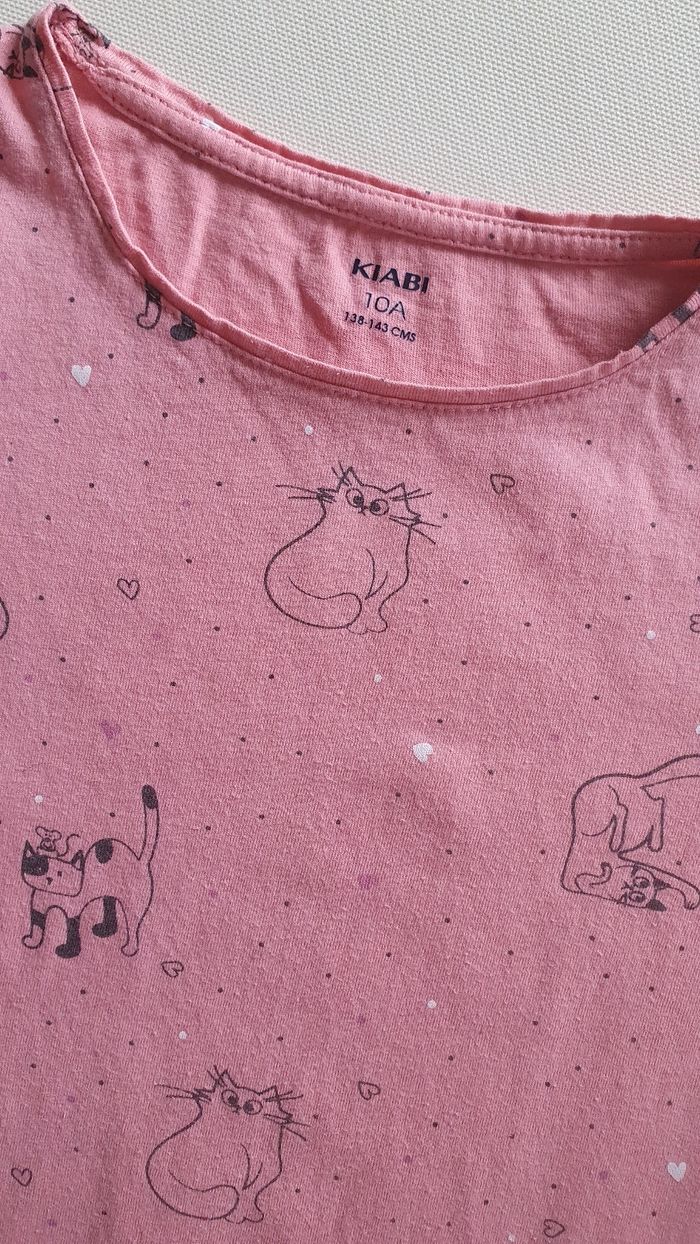 T-shirt rose clair à manches courtes Motif: chats Bon état général sans trou ni tache Marque Kiabi