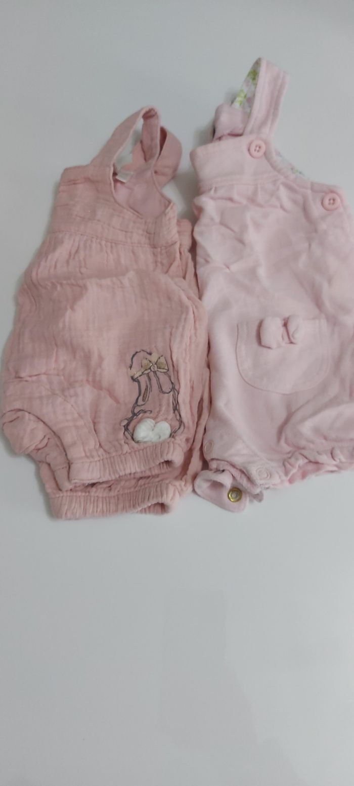 Lot de 2 salopettes bébé fille Taille 1 mois Dans les tons roses, Une avec un petite lapin Ouverture par pression à l entre jambes