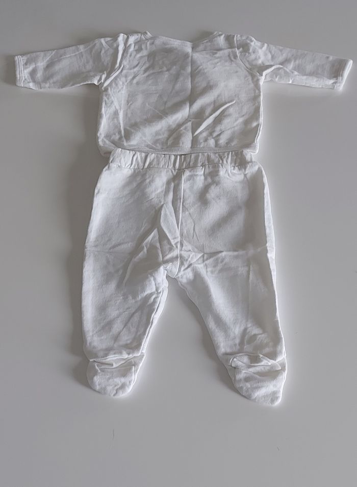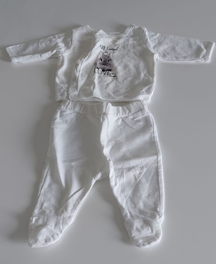 Ensemble blanc 0-1mois Gilet +pantalon Petit lapin dessiné sur le gilet avec écriture Porté 1 fois