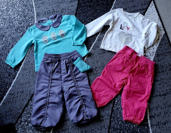 Lot comprenant : 1 ensemble Tex (neuf) 1 ensemble Obaibi (neuf) 1 body ml Les p'tits babies 1 jupe Obaibi + collant neuf 1 manteau Puma 1 manteau Caramouille En très bon état hormis une pression manquante sur le body (voir photo 5) et une couture reprise sur le devant du manteau Caramouille (voir photo 6) Stocké dans maison non fumeur et hygiène irréprochable.