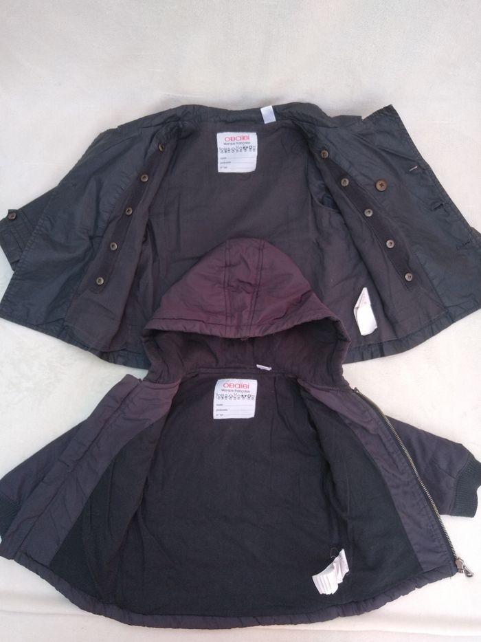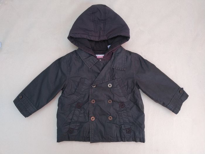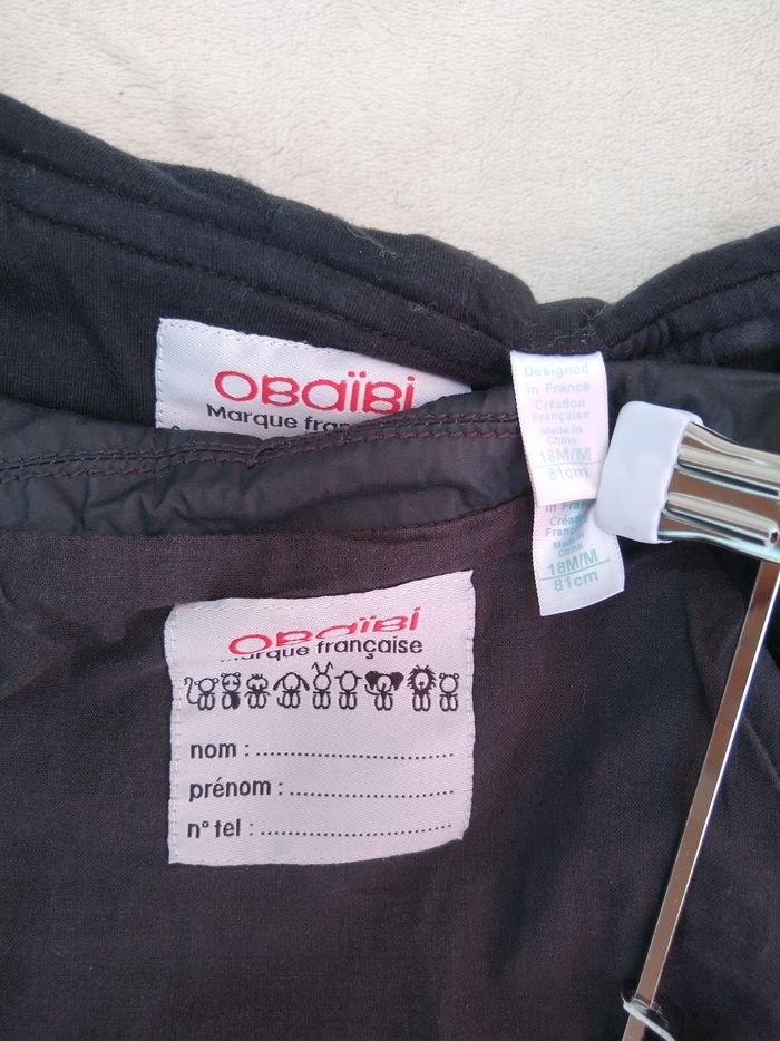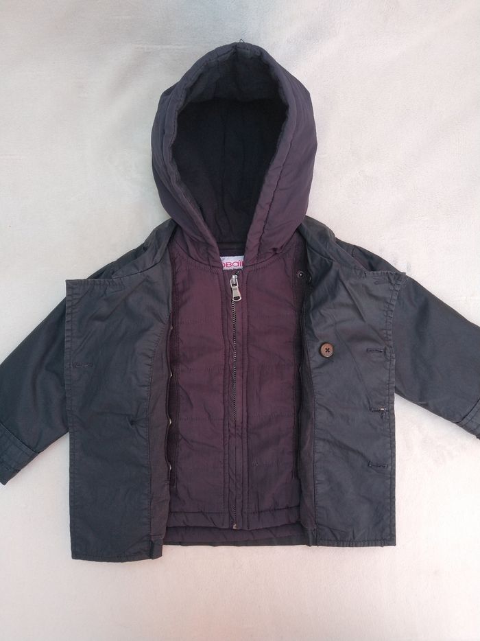 Manteau 2 en 1 Marque Obaïbi Taille 18 mois, 81 cm • Coloris noir • Manteau style trench -> Fermeture par boutons -> 4 poches • Blouson avec capuche -> Fermeture par fermeture éclair • Les 2 parties s'attachent avec des pressions • Boutonnière recousu En bon état #evelyne_garcons_18mois #evelyne_garcons