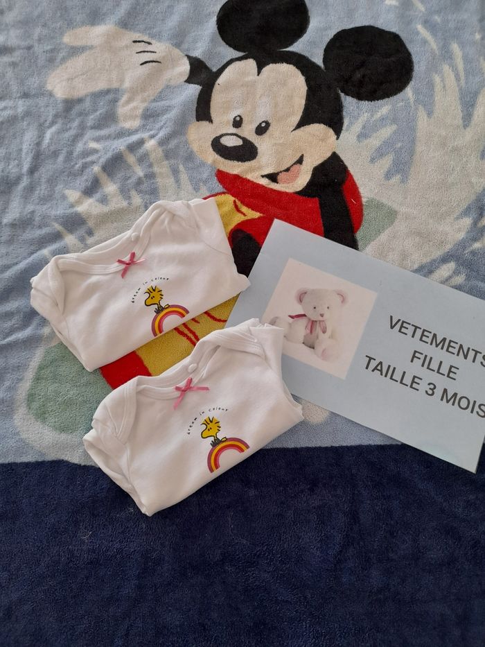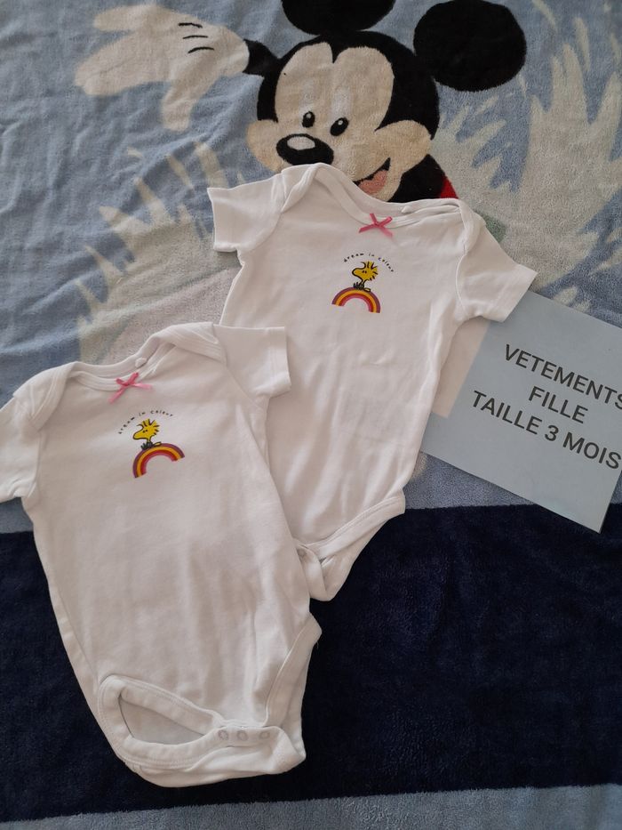 Bonjour-Bonsoir Je met en vente ce bodies taille 3 mois neuf , de couleur blanc et de marque lupilu Possible de faire un lot Tout les vêtements de mon dressing seront laver et repasser avant chaque envoie