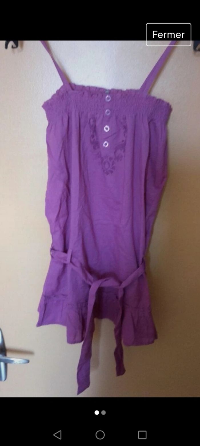 Jolie tunique rose à fines bretelles Petit froncage sous bras 4 petits boutons et une ceinture 100 % coton En très bon état