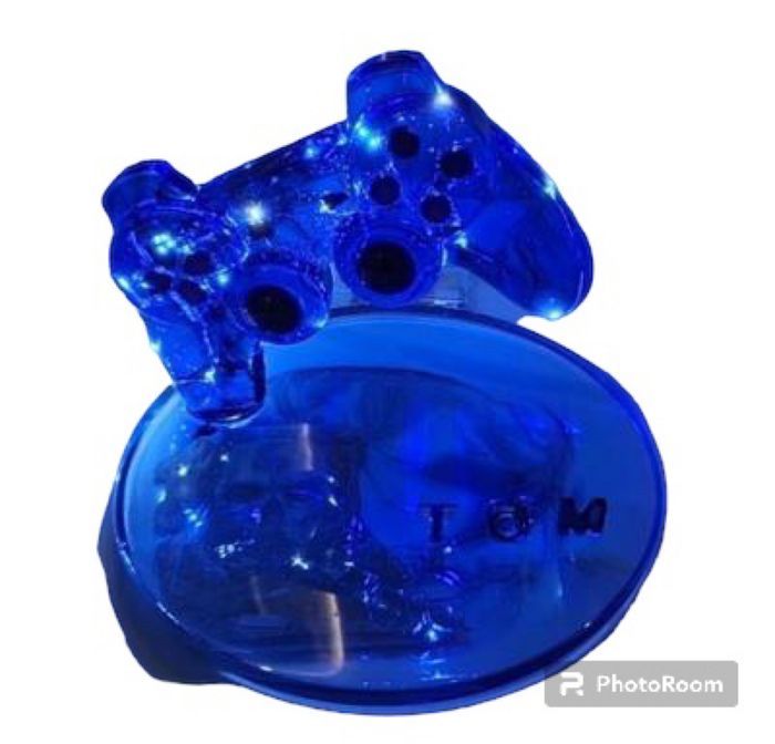 Manette sur socle personnalisable Différents coloris Hauteur : 12cm Longueur : 18cm / Socle diamètre : 22cm