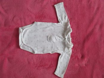 Vends de nombreux autres articles en taille 3 mois : bodies manches courtes et manches longues, brassière, combinaisons, gilet, pantalon, pull, pyjamas, salopette, t-shirt manches longues, vestes, manteaux, ... Vends également des vêtements en 0, 1 et 6 mois ... ... et des accessoires comme une chancelière, des turbulettes, un sac à langer, un tapis de sol, ... Réduction possible en fonction du nombre d'articles N'hésitez pas à me contacter ...