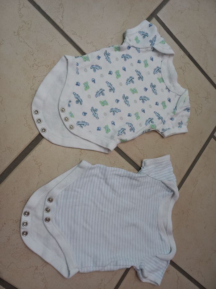 Vends lot de 2 bodies taille 0/3 mois très bon état Marque earlyday petit tache sur l'épaule voir photo mais ça peut partir au lavage