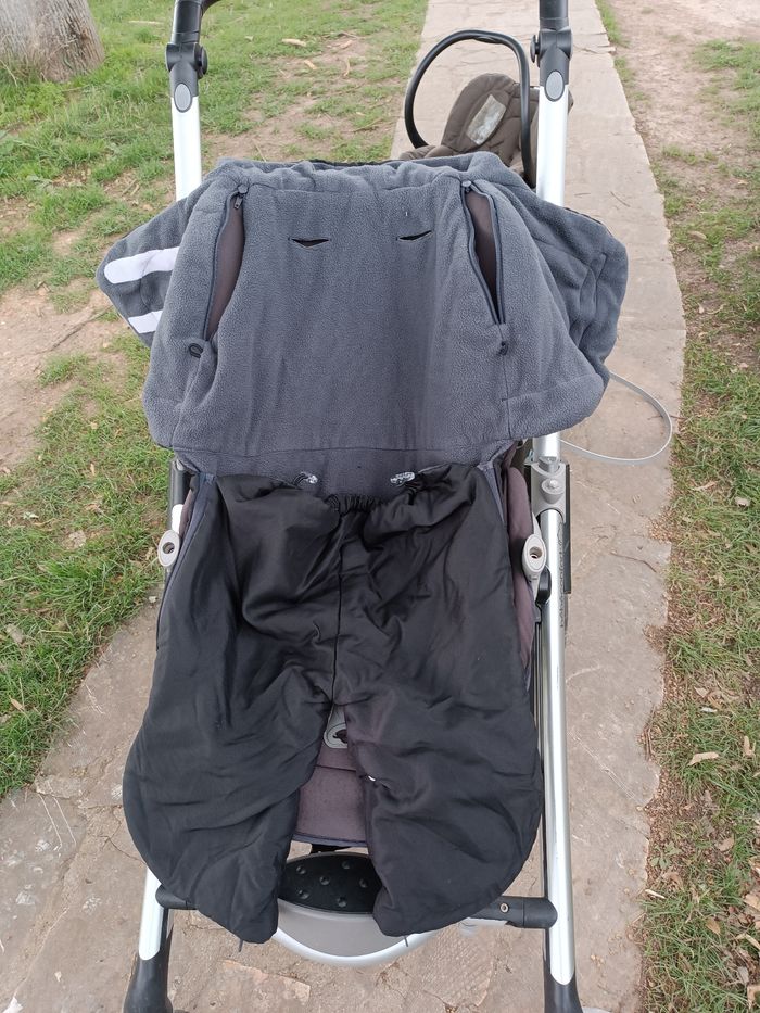 Nacelle Cosy avec la base Poussette avec habit d'hiver et une protection de pluie