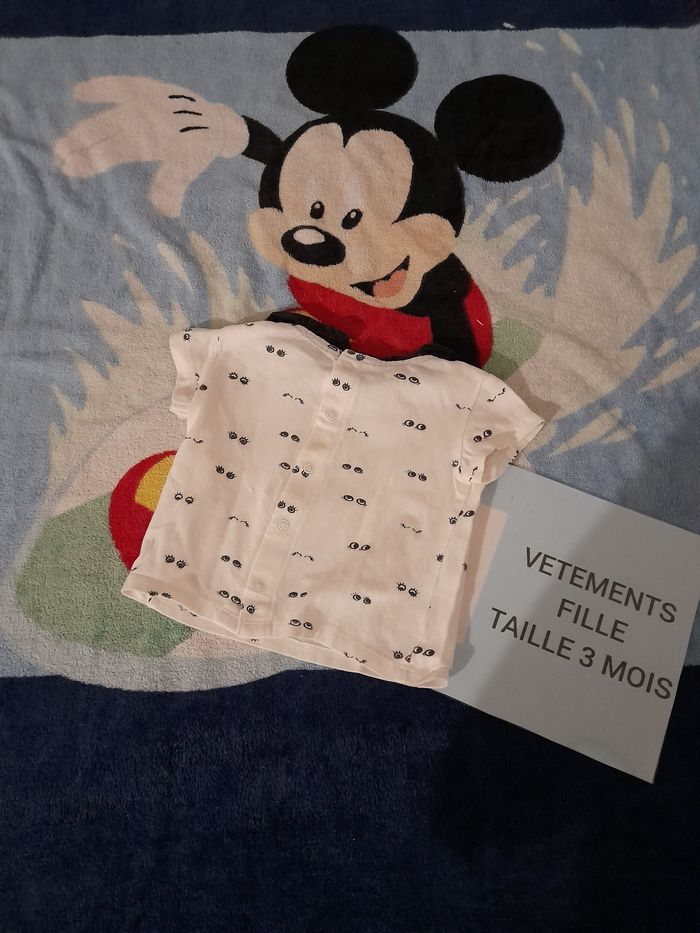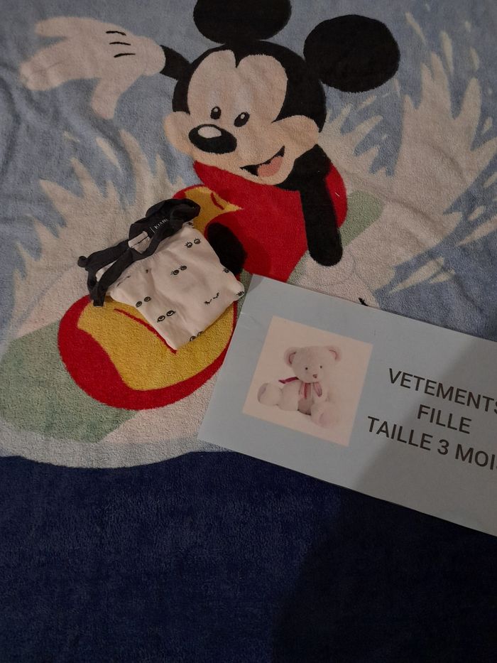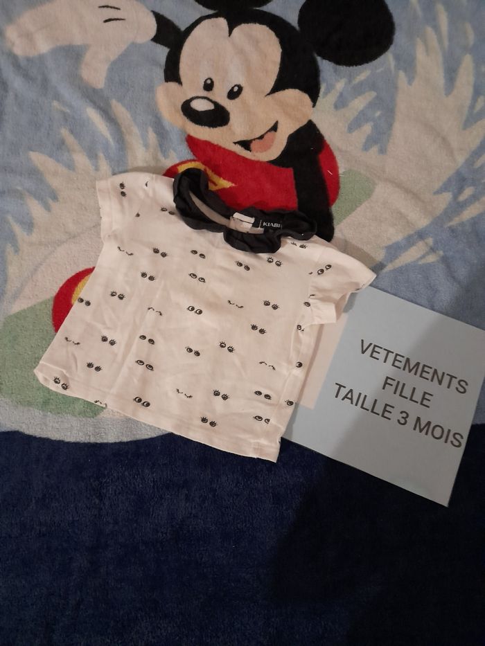 Bonjour-Bonsoir Je met en vente ce tee-shirt taille 3 mois en très bon état , de couleur noir et blanc et de marque kiabi Possible de faire un lot Tout les vêtements de mon dressing seront laver et repasser avant chaque envoie