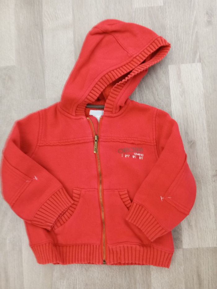 Veste Obaibi d'Okaidi, taille 18 mois, 81 cm, intérieur effet polaire. Elle a quelques bouloches.