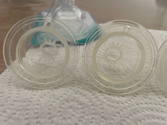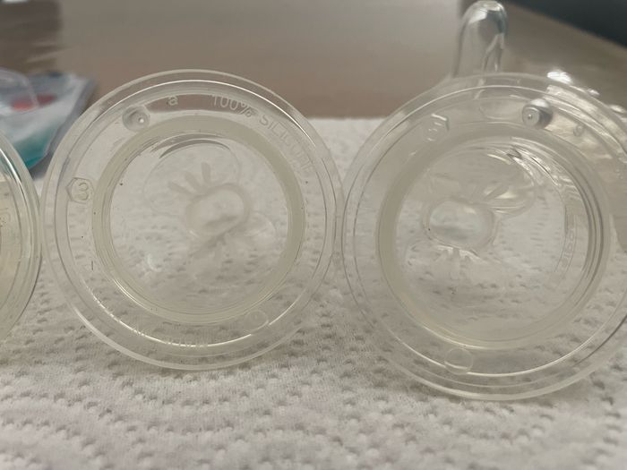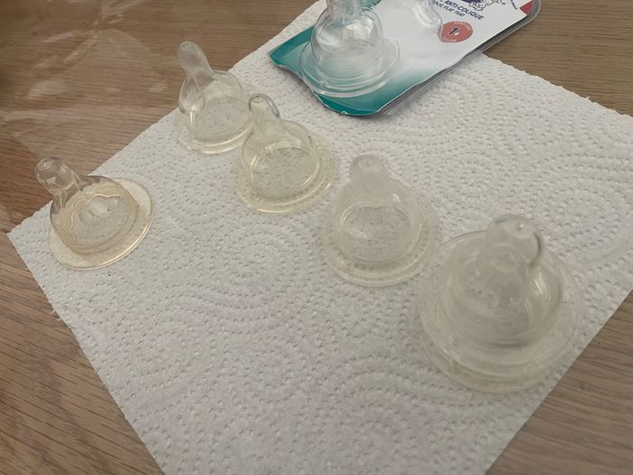 6 tétines dodie et 1 tétine universelle 2 tétines —> vitesse 1 ( la tétine sortie de sa boîte à été utilisé une fois mais non accepté par bébé ) 1 tétine—> vitesse 2 1 tétine —> vitesse 3 2 tétines —> vitesse 5 ( tétines neuves les restantes de ma fille marque non accepté par mon fils ) 1 tétine ronde universelle vitesse 1/2/3