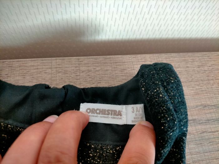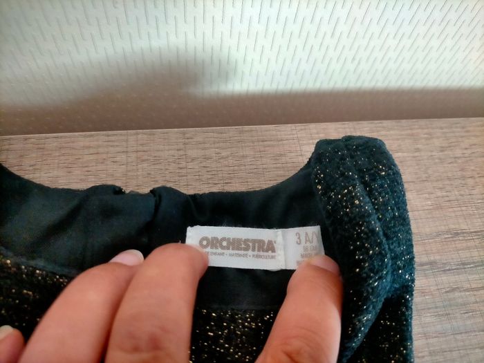 Robe noire et dorée avec liseret doré au niveau de la taille. En très bon état, portée une fois pour le réveillon. Taille 3 ans orchestra.
