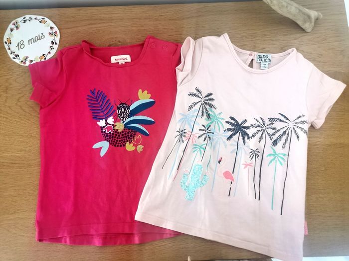Lot de 2 t-shirt manches courtes bébé fille 18 mois catimini et nano nanette excellent etat
