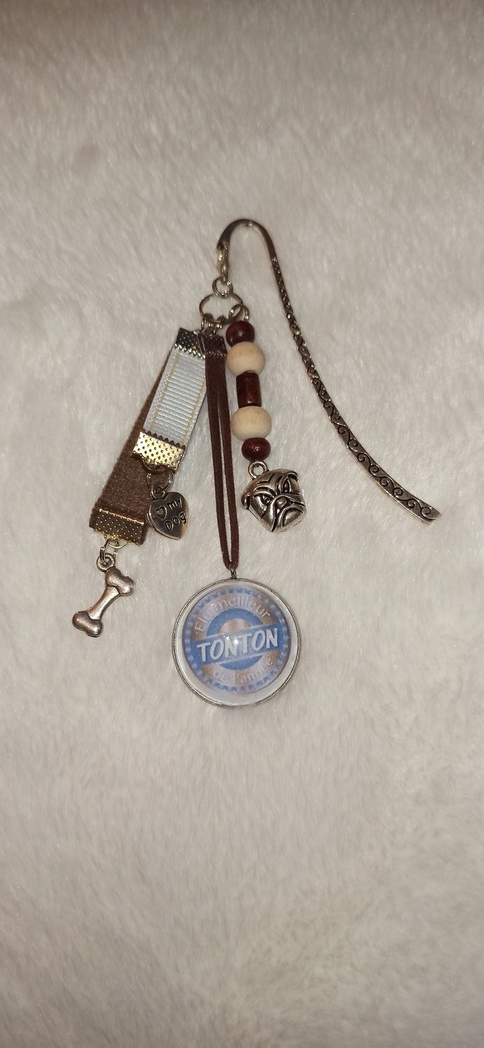 Cabochon en verre. Breloques bulldog et os Rubans et perles marron et crème L'ensemble se détache de la tige pour faire un bijoux de sac. N'hésitez pas à vous abonner et visiter mon dressing, il y a des remises pour les lots.