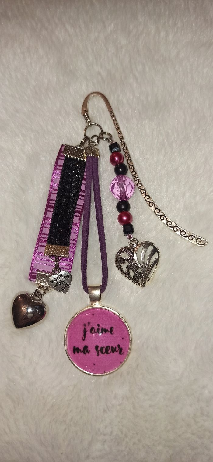Marque page ou bijoux de sac " J'aime ma soeur "