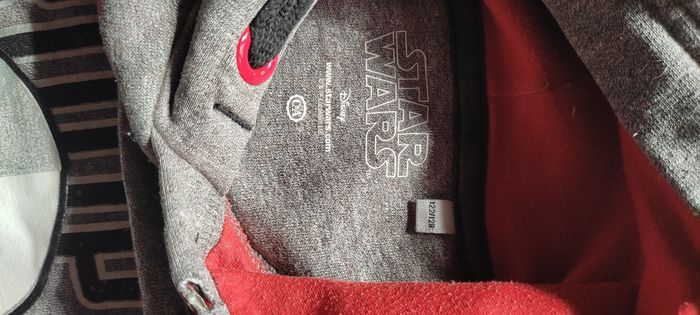 Sweat star Wars porté mais en très bon état . Sur le dessin on peu croire à des traces d'usure mais sa fait parti du dessin .