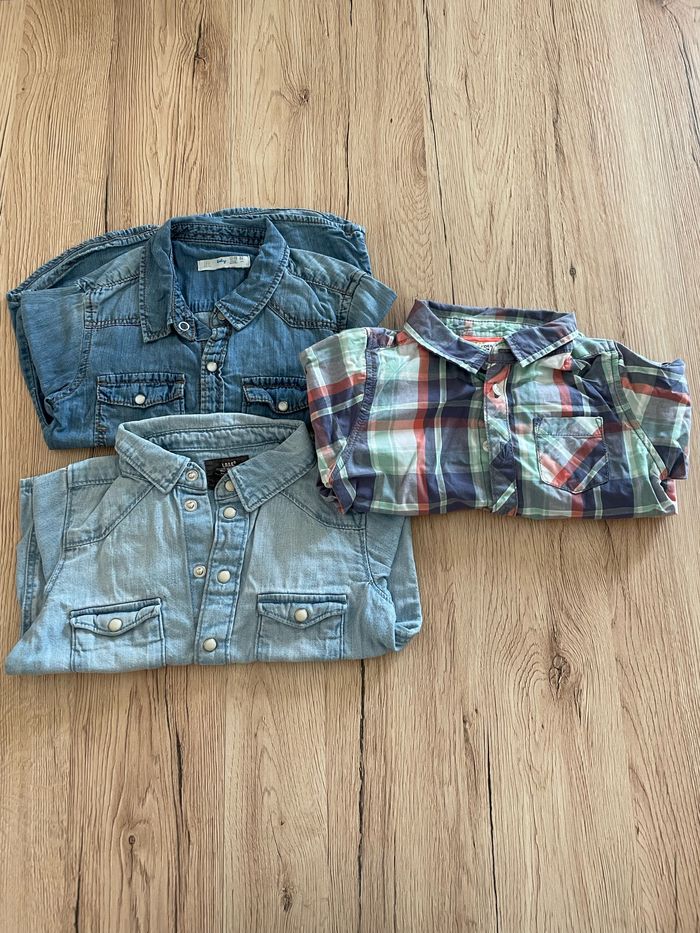 Lot composé de 2 chemises en jean et 1 chemise légère, 18 mois. Bon état.