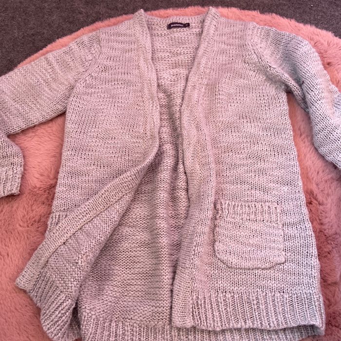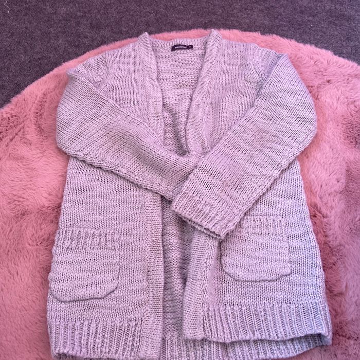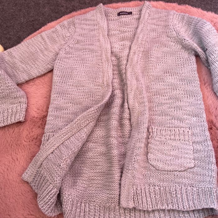 Gilet en laine dans les photos on voit que c’est pas la même couleur mais en vrai c’est gris il est en bon état mais il a juste 2 ,3 fils qui sont partie je préfère être honnête